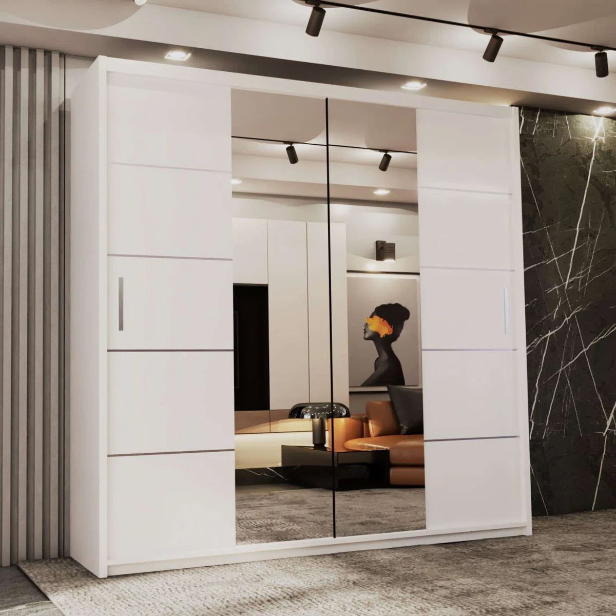 Upgrade your bedroom with this Modern Sliding Mirror Door Wardrobe — a perfect blend of elegance, functionality, and quality craftsmanship.